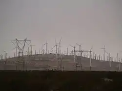 ![]() Wind turbines and power lines in Whitewater, California | |