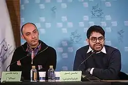 محسن جسور (راست)، وحید مقدسی (چپ) در نشست خبری فیلم چراغهای ناتمام در سی و پنجمین دوره جشنواره فیلم فجر