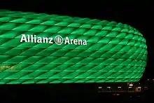 استادیوم آلیانتس آرنای شهر مونیخ تنها ورزشگاه در دنیا است که بدنه بیرونی آن قابلیت تغیر رنگ دارد. رنگ معمولی بدنه بیرونی آن سفید است ولی در هنگامی که باشگاه فوتبال بایرن مونیخ در این استادیوم میزبان است، بدنه بیرونی آن به رنگ قرمز تغییر رنگ میدهد. هنگامی که تیم ملی فوتبال آلمان در این ورزشگاه میزبان است رنگ بدنه بیرونی آن سفید است. قبل از احداث این ورزشگاه، بازیهای تیم فوتبال بایرن مونیخ در ورزشگاه المپیک مونیخ برگزار میشد.