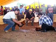ورزشِ خونین گروهی از بازی، ورزش یا سرگرمیها است که با خونریزی همراه است. برپایهٔ فرهنگِ وبستر، شکارِ جانوران و خروس بازی از جملهٔ این کارها هستند.[1] همچنین هرگونه ورزشی که در آن جانوران کشته میشوند یا آسیب میبینند و مردم برای دیدنِ آن گردِ هم میآیند و احساسِ هیجان میکنند نیز یک ورزشِ خونین است.[2]