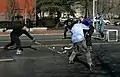 چند شهروند واشنگتن دی سی در حال بازی هاکی در سطح خیابانهای شهر