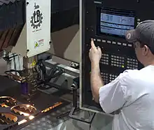 لیزر CNC شامل یک مجموعه لنز متحرک است که یک پرتو نور لیزر را بر روی سطح فلز حمل میکند. اکسیژن، نیتروژن یا هوا از طریق همان نازلی که پرتوی لیزر از آن خارج میشود، تغذیه میشود. این فلز توسط پرتوی لیزر گرم شده و میسوزد و ورق فلزی را برش میدهد.[6] کیفیت لبه ایجاد شده میتواند مانند آینه صاف باشد و دقتی تا حدود ۰٫۱ میلیمتر قابل حصول است. سرعت برش ورقهای نازکی به ضخامت ۱٫۲ میلیمتر میتواند تا ۲۵ متر بر دقیقه نیز برسد. اکثر سیستمهای برش لیزر از منبع لیزر CO2 با طول موج حدود ۱۰ میکرومتر استفاده میکنند. برخی از سیستمهای جدیدتر از لیزر مبتنی بر YAG با طول موج حدود ۱ میکرومتر استفاده میکنند.