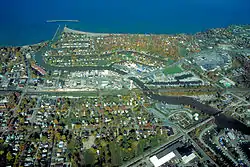![]() Aerial view of Vermilion, Ohio. View is to the north over Lake Erie. | |