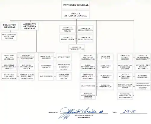 | وزیران مسئول | مریک گارلند، دادستان کل راد روزنستاین، قائممقام دادستان کل |