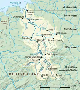 | Cities | برمرهافن، برمن، میندن، هاملن، هان. موندن، کاسل، فولدا (رود) |