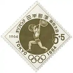 ![]() وزنهبرداری در بازیهای المپیک تابستانی ۱۹۶۴ بر روی تمبر ژاپنی | |