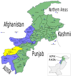 ![]() نقشهٔ مناطق قبیلهای فدرال و خیبر پختونخوا, northwest پاکستان