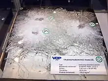 شیشه ضد گلوله یک اصطلاح محاوره ای برای شیشه است که به خصوص در مقابل نفوذ گلوله ها مقاوم است. صنعتگران به طور کلی از آن به عنوان شیشه مقاوم در برابر گلوله یا زره شفاف یاد می کنند .