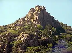 ![]() Escorpión Peak (aka: Castle Peak) (1,475 feet/450 m)—east face view from West Hills. | |