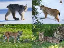 | چهار گونه وشق از بالا سمت چپ در جهت عقربههای ساعت: وشق کانادایی، وشق اوراسیایی، وشق ایبری، گربه دمکوتاه | |