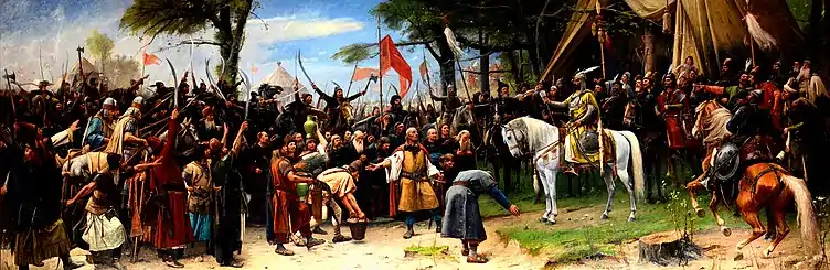 - مشارکتکنندگان ویکیپدیا. «Hungarian conquest of the Carpathian Basin». در دانشنامهٔ ویکیپدیای انگلیسی، بازبینیشده در ۲۷ دسامبر ۲۰۲۰.