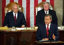 قانون اساسی اعلان جنگ و اعزام سرباز به خارج از مرزها را برعهده کنگره گذاشتهاست. رئیسجمهور اگر چه فرمانده کل ارتش شناخته میشود و ریاست عالیه بر نیروهای مسلح را دارد، اما برای ورود کشوربه جنگ باید مجوز کنگره را کسب کند. در برخی از مواقع رئیسجمهور برای پیشبرد اهداف نظامی خود با مخالفتهای کنگره روبرو میشود. تدوین کنندگان قانون اساسی با تقسیم اختیارات میان رئیسجمهور به عنوان فرمانده کل نیروهای مسلح و کنگره به عنوان صادرکننده مجوز جنگ، تلاش کردند از تمرکز قوا در دست یک شخص یا یک نهاد جلوگیری به عمل آورند. اما واقعیتهای سیاسی قرن بیستم و افزایش اختیارات ریاست جمهوری، به تدریج به کاهش نقش کنگره در اعلان جنگ منجر شد. در حال حاضر رئیسجمهور با در اختیار داشتن کنترل ارتش و سیاست خارجی، جهت دهنده اصلی به مناسبات خارجی است. وی میتواند به بهانه حفظ جان سربازان آمریکایی درخارج ازکشور ویا تأمین منافع ملی، نمایندگان کنگره را به اعلان جنگ وادار نماید.