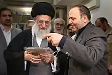 علی خوش لفظ راوی کتاب در کنار آیتالله خامنه ای رهبر ایران