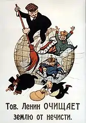 لنین انتظار داشت اشراف و بورژوازی روسیه با دولتش مخالفت کند اما همچنین معتقد بود به دلیل برتری عددی طبقات پایین جامعه که بلشویکها میتوانستند آنها را بسیج کنند، منجر به پیروزی سریع آنها در هر منازعهای خواهد شد.[276] نتیجتاً، او نتوانست مخالفتهای شدید با بلشویکها در روسیه را پیشبینی کند.[276] جنگ داخلی روسیه «سرخها» که طرفدار بلشویکها بودند را در برابر «سفیدها» که با آنها مخالفت میکردند قرار داد و علاوه بر آن، منجر به درگیریهای قومی در مرزهای روسیه و همچنین درگیری سرخها و سفیدها با دهقانان («سبزها») شد.[277] مورخان گاه جنگ داخلی روسیه را به همین دلیل دو جنگ جداگانه محسوب میکنند: یک جنگ میان انقلابیون و ضدانقلابها و جنگ دیگر میان دو جناح انقلابی.[278]