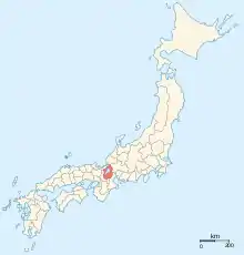 نقشه ژاپن در سال ۱۸۶۸ میلادی. این ولایت با رنگ تیره مشخص شده است.