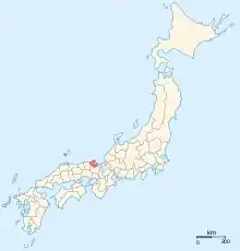 نقشه ژاپن در (سال ۱۸۶۸). این ولایت با رنگ تیره مشخص شده است.