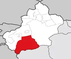 ![]() نقشه منطقه خودمختار سینکیانگ اویغور و موقعیت استان ختن | |