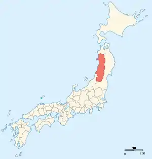 نقشه ژاپن در سال (سال ۱۸۶۸). این ولایت با رنگ تیره مشخص شده است.