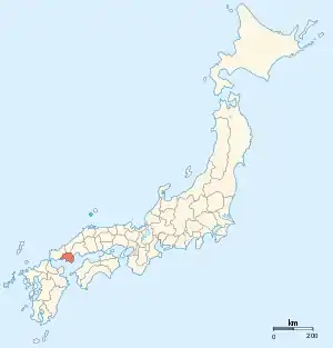 نقشه ژاپن در سال ۱۸۶۸ میلادی. این ولایت با رنگ تیره مشخص شده است.