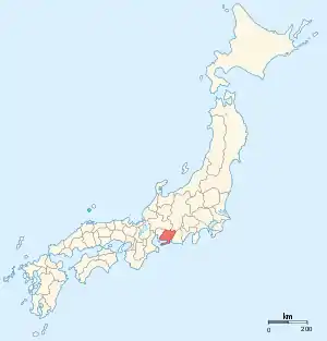 نقشه ولایتهای ژاپن (۱۸۶۸) ولایت میکاوا با رنگ تیره نشان داده شده است.