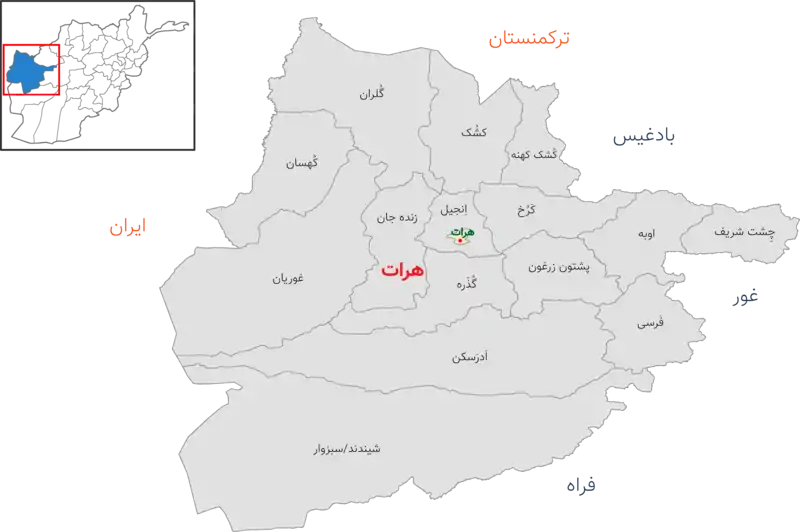 ![]() موقعیت هرات با رنگ سرخ در افغانستان | |