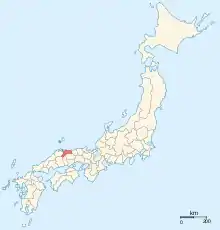 نقشه ژاپن در سال ۱۸۶۸ میلادی. این ولایت با رنگ تیره مشخص شده است.