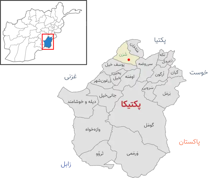 ![]() پکتیکا در نقشه با رنگ قرمز نشان داده شدهاست | |