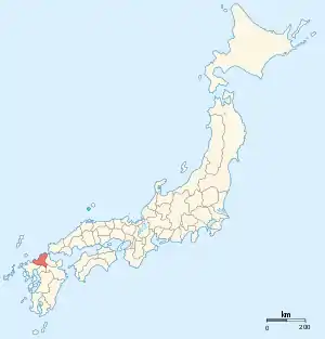 نقشه ژاپن در سال ۱۸۶۸ میلادی. این ولایت با رنگ تیره مشخص شده است.