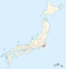 نقشه ژاپن در سال (۱۸۶۸) ولایت کازوسا پررنگ نشان داده شده است.