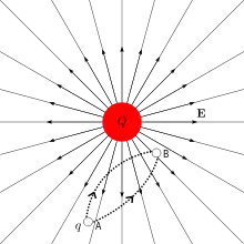کار انجام شده بر روی بار Q عبارتست از حاصل ضرب شدّت میدان الکتریکی مقدار بار و فاصله: