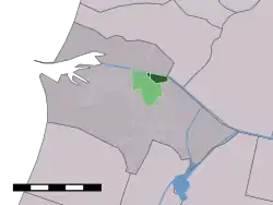 ![]() The village (dark green) and the statistical district (light green) of Velsen-Zuid in the municipality of Velsen. | |