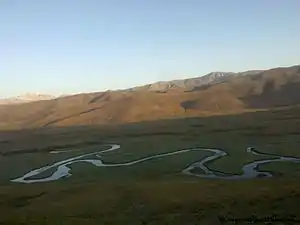 یک نمای زیبا از شهرستان خواهان و دو روستا آن کمر کجی؛ و بخشی از ناحیه شوراآباد و رود پنج
