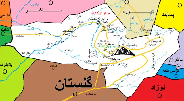 ![]() ولسوالی پُرچمن روی نقشه ولایت فراه | |