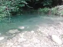 این چشمه که از فاصله 90 متری رودخانه به صورت چشمهای پرآب میباشد، با جریانی آرام به رودخانه مهربانرود می پیوندد، بسیار زیبا و دیدنی است و آّب خنک و زلالی دارد که به دلیل کبود به نظر رسیدن آب آن، آن را "کئو" نامیدند.