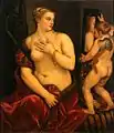 ونوس در توالت خود توسط پیتر پل روبنس، حدود ۱۶۰۸. اعتقاد بر این است که نسخه ای از روبنس ساخته شده از تیسین به سفارش فیلیپ دوم اسپانیا
