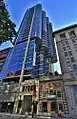یک سلسله ساختمانهایی که در هستهٔ قدیمیِ مرکز شهر ونکوور با سبک معماری ادواردین ساخته شدهاند در دوران خودشان بلندترین ساختمانهای امپراتوری بریتانیا به حساب میآمدند. این ساختمانها شامل مقر Carter-Cotton (مقرِ قبلیِ روزنامهٔ The Vancouver Province)، ساختمان دامینیون(۱۹۰۷)، برج خورشید (Sun Tower)(۱۹۱۱) که در خیابانهای کمبی، هستینگز، بیتی و پندر قرار دارند. برج خورشید در دههٔ ۱۹۲۰ بلندترین ساختمان تجاریِ امپراتوری بریتانیا محسوب میشد.[99] ساختمان مارین (Marine Building) به دلیل پوشش و چهرهٔ کاشی کاری شدهٔ سرامیکیِ استادانهاش و همچنین بالابرها و درهای از جنس برنجی-طلاییاش یکی از مکانهای موردعلاقهٔ فیلمسازان برای فیلمبرداری به حساب میآید.[100] در صدرِ لیست بلندترین ساختمانهای ونکوور، نام ساختمان لیوینگ شانگری-لا (Living Shangri-La) قرار دارد که دارای ارتفاعی معادل ۲۰۱ متر(۶۵۹ فوت) و ۶۲ طبقه است.[101] دومین ساختمان بلند ونکوور برج و هتل بینالمللی ترامپ است که دارای ۱۸۸ متر(۶۱۷ فوت) ارتفاع است. سومین و چهارمین ساختمانهای بلند ونکوور هتل جورجیا با ۱۵۶ متر(۵۱۲ فوت) ارتفاع و ساختمان One Wall Centre با ۱۵۰ متر ارتفاع(۴۹۰ فوت) و ۴۸ طبقه هستند. پنجمین ساختمان بلند در این لیست، برج شاو(Shaw Tower) با ۱۴۹ متر ارتفاع(۴۸۹ فوت) است.[102]