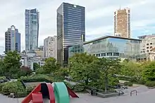 چندین ساختمانِ مدرن در مرکز شهر ونکوور قرار دارند، از جمله هاربر سنتر، دادگاه عالی ونکوور، میدان رابسون (طراحی شده توسط آرتور اریکسون)، کتابخانه ونکوور (طراحی شده توسط موشه سفدی و DA Architects) که یادآور کولوسئوم در رم است و یک ساختمان چوبی بزرک به نام وودوارد (طراحی شده توسط شرکت Henriquez Partners Architects).
