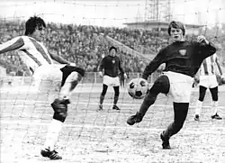 ![]() وولفگانگ اشتاینباخ (چپ) در یک بازی Oberliga در ۱۹۷۶ (در سمت راست: هانس-یورگن ریدیگر) | ||||||||||||