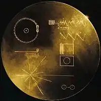 در صفحهای ۱۲ اینچی مسی با روکش طلا چکیدهای از فرهنگ و آثاری از زندگی گونههای مختلف در زمین قرار داده شدهاست: