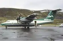 Bombardier Dash ۷ در فرودگاه هامرفست در سال ۱۹۸۷