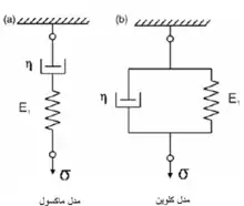 در سادهترین آرایش مدل ماکسول- فنر و سمبه- ماتریس به دنبال هم بسته شده و نتیجتاً در اثر بارگذاری تحت تنش یکسان قرار گرفته، اما کرنش متفاوتی تجربه خواهدنمود. در مدل کلوین، مقدار کرنش فنر و سمبه- ماتریس یکسان است. زیرا ۲ جزء به موازات یکدیگر تغییر شکل دادهولی تنش متمرکز برآنها متفاوت است. در مدل کلوین، فنر و سمبه-ماتریس هماهنگ با یکدیگر حرکت کرده تل میلههای بالایی و پایینی موازی باقی بمانند. با توجه به آهسیستگی عکسالعمل سمبه_ماتریس به تنش، در ابتدا کل بارگذاری را تحمل ولی به تدریج تنش را به فنر منقل میکند. هیچ سک از ۲ مدل فوق برای بیان رفتار ویسکو الاستیک مناسب نیستند، زیرا قادر به توصیف توأم تنش زداییو خزش نمیباشند؛ بنابراین، در عمل ترکیبهای پیچیدهتر فنر و سمبه- ماتریسمورد استفاده قرار میگسرند. برای مثال