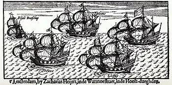 کشتیها از ۷۵ تا ۲۵۰ تن داشتند و مردان ملوان زیادی داخل آنها بودند، وقتی کشتیها به سواحل گینه در غرب آفریقا رسیدند مردان ماجراجوی کشتی به جزیره آنوبون (در گینه استوایی کنونی) برای تأمین آذوقه حمله کردند. سپس سفرشان را در غرب و به طرف تنگه ماژلان ادامه دادند. به علت نامساعد بودن آب و هوا و پس از چند بلایای در اقیانوس اطلس جنوبی، تنها سه کشتی از پنج کشتی موفق شدند از تنگه ماژلان بگذرند. (یکی از کشتیها بعد از اینکه در آب و هوای بد سرگردان شد و توسط یک کشتی اسپانیایی دستگیر شد. یک کشتی دیگر در ژوئیه ۱۶۰۰ با ۳۶ مرد بازمانده از ۱۰۹ خدمه اصلی، به روتردام بازگشت)