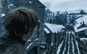 ![]() یک پسر در حال تماشای ورود لشکر دنریس تارگرین و جان اسنو است. | |