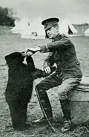 در زمان جنگ جهانی اول، ارتشیان وینیپگ در مانیتوبای کانادا در حال جابجایی به شرق کانادا برای اعزام به اروپا بودند. هنگامی که قطار حامل آنها در وایت ریور، انتاریو ایستاد، ستوان هری کولبورن یک توله خرس سیاه ماده را از شکارچیای که مادرش را کشته بود به مبلغ ۲۰ دلار خریداری کرد و با خود برد. او این توله خرس را به یاد شهرش، وینیپگ نامگذاری کرد که آن را به اختصار وینی صدا میزدند.