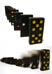 - مشارکتکنندگان ویکیپدیا. «Domino effect». در دانشنامهٔ ویکیپدیای انگلیسی، بازبینیشده در ۲۲ اکتبر ۲۰۱۷.
