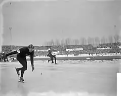 ![]() Viktor Kosichkin in black suit and white armband at 1966 European Allround. | |||||||||||||