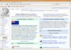 ![]() تصویری از صفحه نخست ویکیپدیای یونانی | |