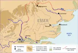 پادشاهی ساکسونهای شرقی Ēast Seaxna Rīce (انگلیسی باستان ) Regnum Orientalium Saxonum (لاتین) Essex | |||||||||