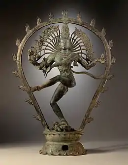 یک تندیس برنزی از رقص شیوا، مربوط به سده دهم میلادی در زمان دودمان چولا. موزه هنر شهرستان لسآنجلس.