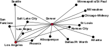 Hub and spoke airline route structures. Los Angeles and Denver are used as hubs.